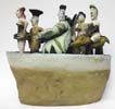 Auf Schiffskörpern aus gebranntem Ton und in meist kleinformatigen Schaukästen versammelt der bei Stuttgart lebende Künstler ein buntes Völkchen: Narren, Gaukler, Clowns, üppig-geile Weiber, Typen aus der Halbwelt, allerhand Getier und merkwürdige Utensilien – kleine Bühnen, auf denen das pralle Leben zur Aufführung kommt. Detailreich und in delikater Farbigkeit schildert der Künstler menschlich-allzumenschliches: Triebhaftigkeit, Wollust, Völlerei, Eitelkeit, Sittenlosigkeit. Liebevoll und lustvoll, mit scharfem Blick und doppelbödigem Humor, setzt Werner Lehmann seine skurril-grotesken Figurenwelten in Szene. Gelegentlich zitiert er dabei Bekanntes aus Kunstgeschichte und Literatur. In seinen Bildwelten spiegelt der Künstler mit oftmals derber Komik den alltäglichen Irrsinn des Lebens wieder.